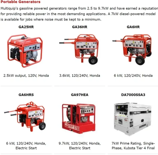 Portable generator power designed for construction and rental applications or anywhere high performance, reliable power is needed. Built with heavy-duty frames and premium components to provide long, trouble-free operation even in abusive environments. Compact and quiet generator is ideal for powering a variety of equipment including high starting amperage tools.